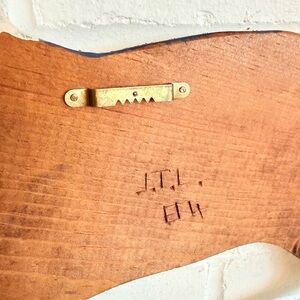Charming wooden rocking horse decor. Features brown, blue, and cream colors. Perfect for adding a rustic touch to any room.
