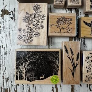Wooden Rubber Stamp Lot Variety Bundle Scrapbooking Card Making Lot of 15 +