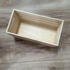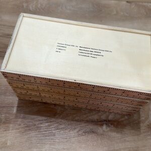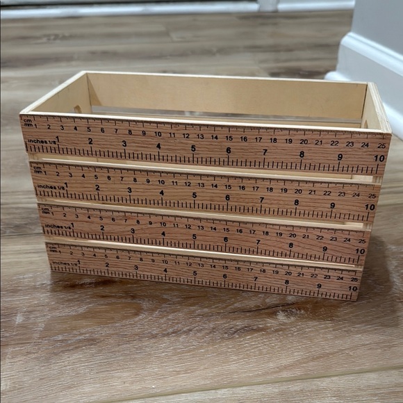Stylish wooden storage box with a ruler design. Perfect for organizing small items.