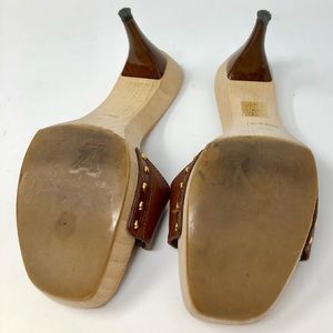 Wooden Sandals by Louis Vuitton 💕💯percent aunthentic guaranteed 💕Code CL 0096 💕Gold Studs on sides 💕Heels 2.5 inches 💕No major flaws 💕Please check pictures for more details