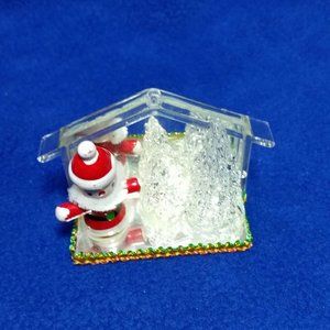 Vintage Wooden Santa and Snowman With Spun Glass Christmas Trees Ornaments. Set of 2. Pre-owned. No Box.