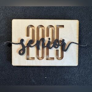 Stylish wooden sign with 'Senior 2025' cutout. Perfect for graduation decor.