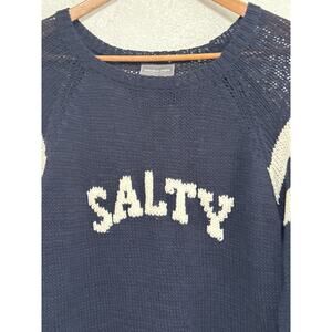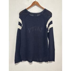 Wooden Ship Salty Sweater M Navy Blue Raglan Airy Beach Coastal Nautical Preppy
