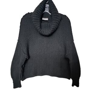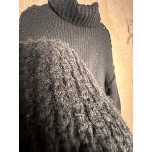 Wooden Ships Black Chunky Turtleneck Sweater Sz S/M Mohair Wool Balloon Sleeves