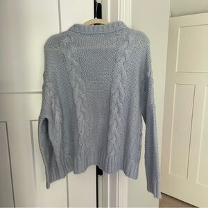 Wooden Ships Blue Crewneck Boxy Sweater cable knit stretch
