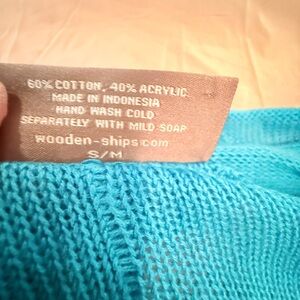 Wooden Ships Blue/Green Open Front Cardigan Sweater Lightweight Size S/M $