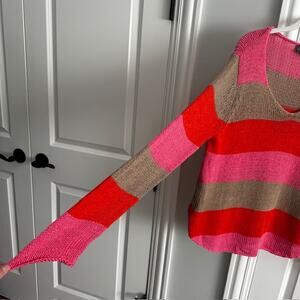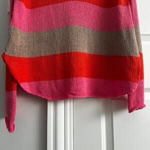 Wooden Ships Bright Pink Stripe V-neck Pullover Sweater Small/Medium