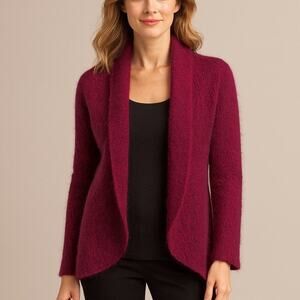 Wooden Ships Burgundy Fuchsia Mohair Wool Cardigan Sweater