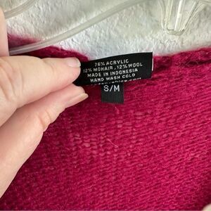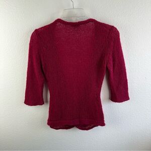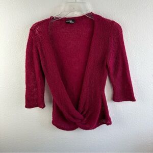 Wooden Ships Burgundy Open Knit Cross Over Sweater Wool Mohair Blend Size S