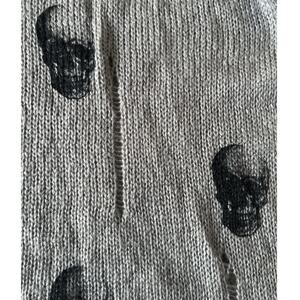 Wooden Ships Distressed Skull Sweater Women XS Gray Boxy Mohair Wool Goth Cozy