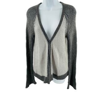 Anthropologie Wooden Ships Gray Cashmere Colorblock V-neck Open Front Sweater Cardigan XS