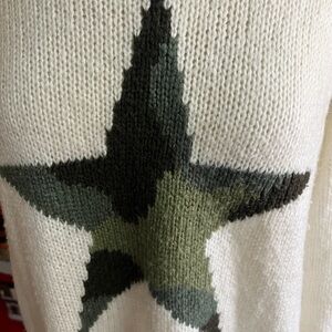 Great condition Wooden Ships sweater. Cream with classic green camouflage star. Mohair and wool blend makes it incredibly soft and warm while still being lightweight. Long sleeve. Crew neck.