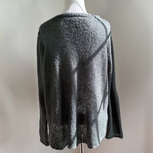 Wooden Ships Mohair Wool Dark Gray Light Red Heart Knit Sweater XS Oversized