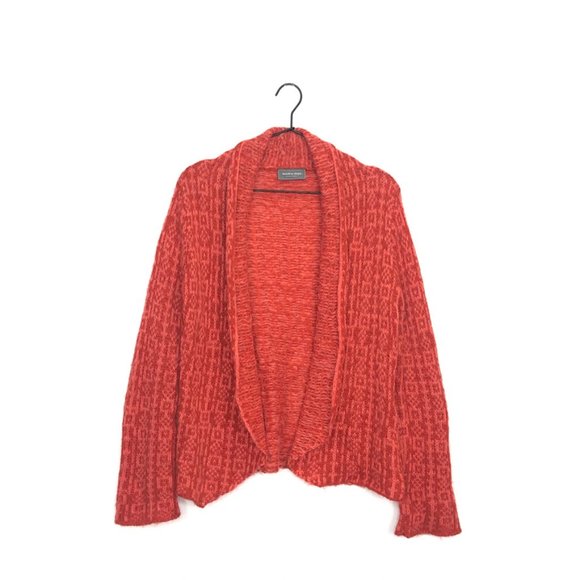 Description- Wooden Ships Paola Buendia Open Front Cardigan Sweater, Red Orange, 76% acrylic 12% Mohair 12% Wool
