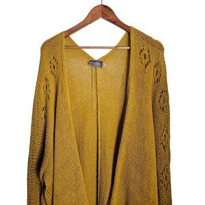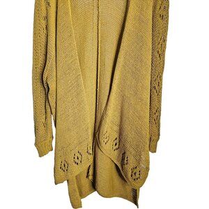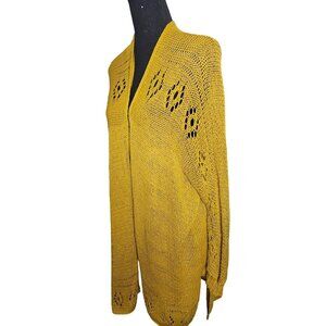 Wooden Ships Paola Buendia Mustard Yellow Open Knit Light Cardigan Sweater M/L