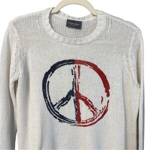 Wooden Ships Peace Sign Knit Sweater White XS Beach Casual Americana Hippie