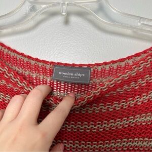 Wooden Ships Red and Taupe/Brown Striped Short Sleeve Woven Top