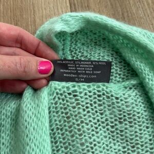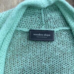 Wooden Ships Sea Foam Blue Green Open Wool Blend Crocheted Cardigan Small/Medium