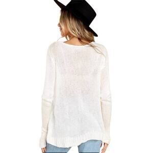 You'll be reaching for this comfy and classic v-neck sweater all season long. Perfect for football games, tailgates, Superbowl parties, and more. Lightweight and flattering on the neckline, cuffs and hem. V-neck. Side split hems. Pulls on. Unlined. Acrylic, mohair, wool. Machine wash. In great preowned condition.