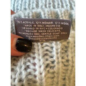 This Wooden Ships Sweater is a cozy pullover skillfully crafted from a premium wool, mohair blend. Its cable knit design and crew neck style offer a timeless, chic look perfect for cooler weather. Excellent pre-owned condition.