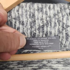 Wooden Ships Sweater Womens M/L Gray White Open Front Cardigan Mohair Wool Knit