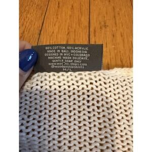Wooden Ships Sweater Womens M/L Ivory Open Knit G.I.N. Graphic Crewneck Pullover