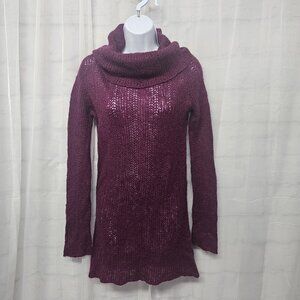 Wooden Ships Turtleneck Sweater Purple Wool Mohair Tunic Pointelle Knit S/M