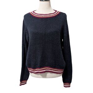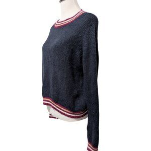 Wooden Ships Womens Sz XS Blue Red White Wool Mohair Blend Relaxed Knit Sweater