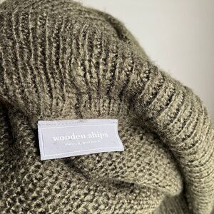 Wooden Ships oversized chunky lightweight crochet knit sweater green turtleneck