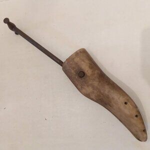 Vintage Wooden Shoe Form with Manual Steel Stretching Device is in Rustic Primitive Condition. There is rust on the metal and cracks in the wood. Please see all photos. The woodenpart measures approx 9" long.