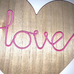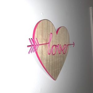 Super cute heart shaped wooden sign with metal love. Perfect to spice up a dorm room or a living room! Offers welcomed!