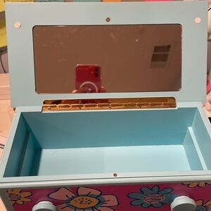 @foxone hi, just added some pics. the top lid has a mirror inside and removable insert tray. thanks! let me know if you have more questions.
