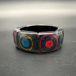 Wooden Stretch Bracelet Hand Carved Colorful Dymond Wood B Merry Alaska Boho