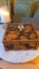 Elegant wooden tea box with intricate floral design and crystal knob. Perfect for tea storage.