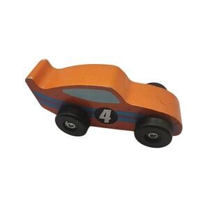 Wooden Toy Cars Lot of 2 Orange Race Car #4 & White Ambulance Pretend Play
