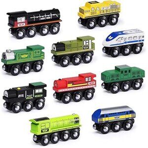 Wooden Train Set Accessories, Magnetic Toy Car Set (10 PCS)