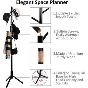 🧿Premium Wooden Material - Alotpower Coat Rack is made of high-quality solid lacquered rubber wood with 3 steady prong legs. 8 sturdy hooks allows you to hang handbags, briefcases, laptop bags, hats, scarves, vests, sweaters, backpacks, ties, and umbrellas or any other things you want.