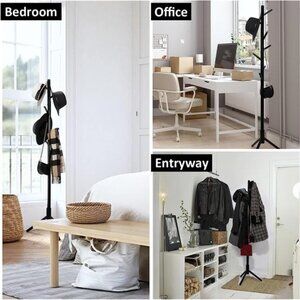 🧿Space Saving - This coat rack takes up minimal space in foyers, living rooms, office and keeps coats and accessories out of cramped closets and easily accessible with hooks all around the rack.