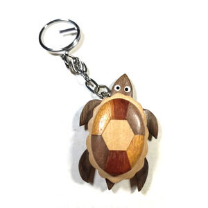 Wooden Turtle Big Eyed Character Keychain
