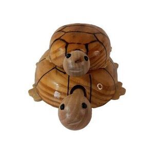Wooden Turtle Tortoise And Baby On Wheels Moving Head And Tail Toy 6.5" X 4.5"