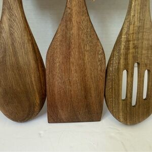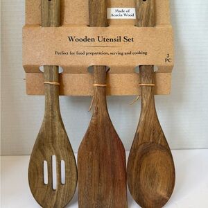 Enhance your kitchen with the Wooden Utensil Set. Crafted from acacia wood, this brown set is perfect for food preparation, serving, and cooking.