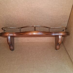 Elegant wooden wall shelf with a gold rail. Perfect for displaying decor. Used Condition
