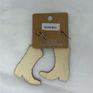 Wooden Western Boot Earrings