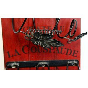 Wooden Wine Bottle Holder Glasses Red 2006 Wall Hanging 30" Tall
