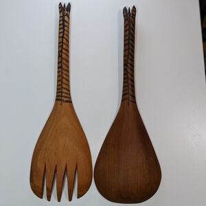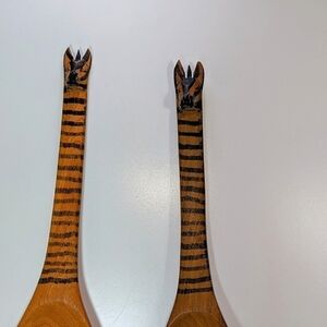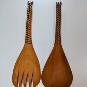 Picturing the Vintage Wooden Zebra Salad Utensils Tongs.