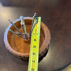 Gorgeous vintage Elwood Rusticware Nut Bowl. This groovy 1960s wood and bark nut Bowl has midcentury family charm written all over it! Enjoy endless fun with this wooden and silver ring toss game. Ideal for holiday gatherings and family fun.