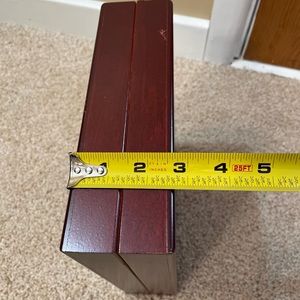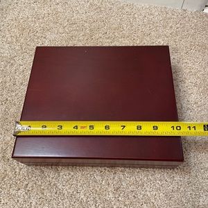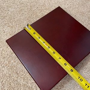 Box measures 10 3/8” x 9” and stands 2 5/8” tall. Box isn’t perfect and has some scratches to it but nothing major. Comes with everything pictured and shipped well.