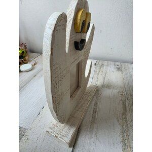 stands about 9.5 in tall by 7-in x 2 in, actual frame is about 3 in by 2 in, no problems