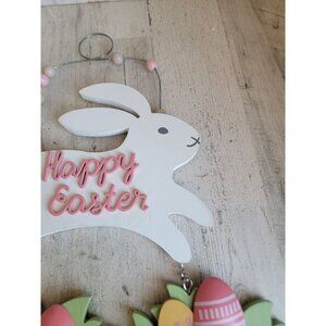 Wooden hanging happy Easter white bunny egg grass Spring home decor