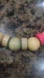 Playful necklace with various sized wooden beads in shades of pink, cream, green, and gray. Perfect for a casual, bohemian look.